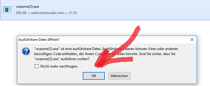 Diese zusätzliche Sicherheitsabfrage mit „OK“ beantworten!